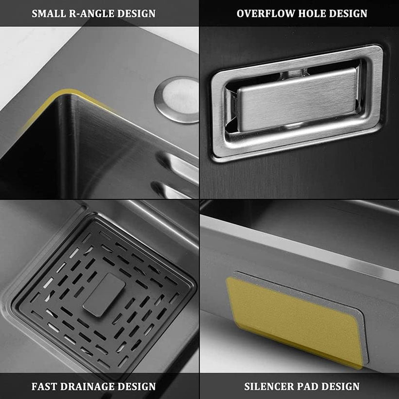 AQUEVA All In One Kitchen Sink S.S Multipurpose Multifunction 3 Mode Tap with Pullout Feature Cup Washer Single Bowl with RO water Tap S.S KITCHEN SINK BLACK