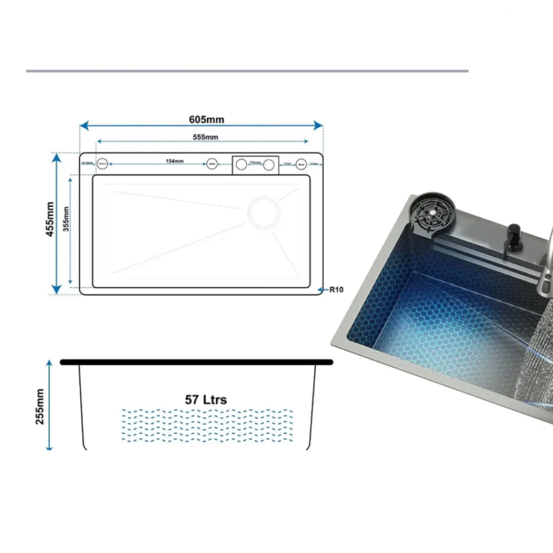 DRAINAGE KNOB (Additional Feature): Exclusive to AQUEVA — a smart drainage knob allows you to open or close the drain with a simple twist, keeping your hands clean and dry.