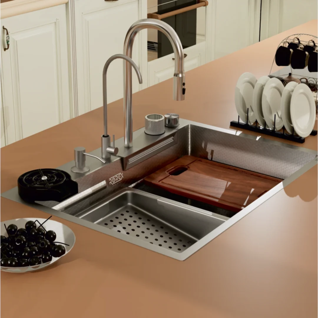 X-GROOVES: Precision-engineered grooves ensure fast water drainage and a dry sink surface.