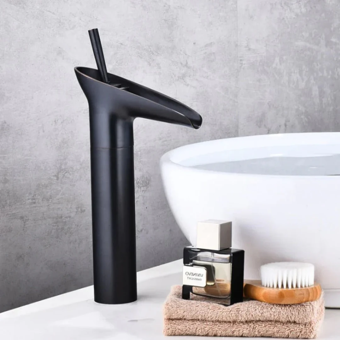 About this item- [Waterfall Spout]The bathroom sink faucet vers a gentle cascade into the sink and displays the natural beauty of flowing water.